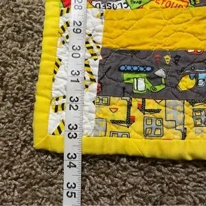 Quilt Handmade Child's Baby Patchwork Hand Quilted Trucks Construction Blanket. Measures approximately 36.5x34.5. Item is in great pre-owned condition. May show signs of general wash & wear. Please see photos for full details of condition. Any size measurements shown are approximate. Please refer to measurements for fit. Smoke free, pet friendly home. Colors may vary slightly based on lighting.
