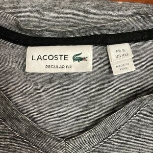 Stylish gray V-neck t-shirt by Lacoste. Features the iconic crocodile logo.