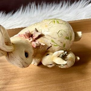Keywords/Tags: cottagecore decor, spring bunny figurine, Easter decoration, nursery shelf styling, pastel home accents, whimsical animal decor, bunny lover gift, shabby chic figurine, cozy home styling, floral sculpture, mother and baby bunny, vintage inspired decor
