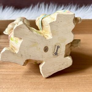 Hand Painted Figurine Baby Bunny with Mama Rabbit Wood Carved Roman Inc