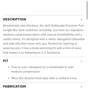 Alo Yoga Olive Green Softsculpt Precision Full Length Bra Tank