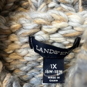 NWT Lands' End Chunky Knit Turtleneck Sweater - Cream and Gray