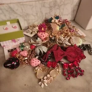 lot of betsey johnson jewelry. Necklaces, bracelets and earrings. Explore this vibrant collection of women's jewelry featuring a variety of colors and styles. Perfect for adding a touch of elegance to any outfit.