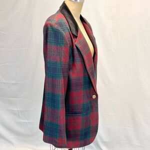 VINTAGE 80s tartan plaid wool blazer suit jacket women’s velvet collar lapel