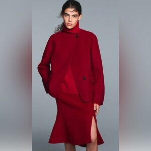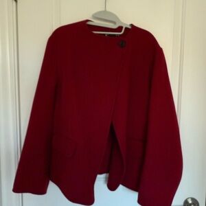 Elegant red blazer. Modern design. Perfect for formal occasions.