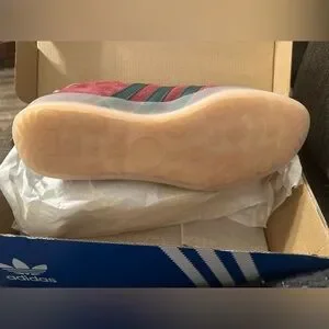 Adidas Gazelle in maroon suede with dark green stripes. Ideal for everyday style. Men’s size 9