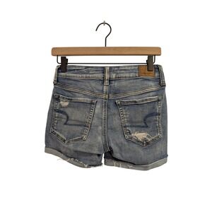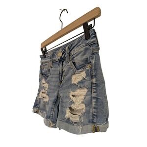 American Eagle Midi Shorts Distressed Crochet Lace Denim Boho Medium Wash 4