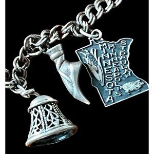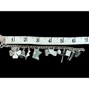 Sterling Silver Charm Bracelet W/ Pinecone Mug Clover & State Charms VTG 6.25” L