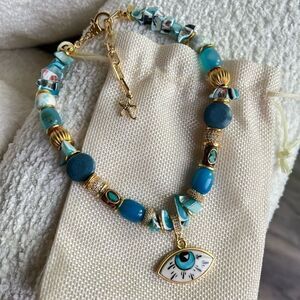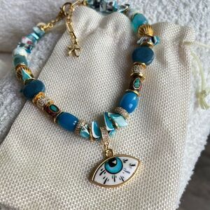 Handmade Natural Stones Evil Eye Necklace, MADE IN TURKEY