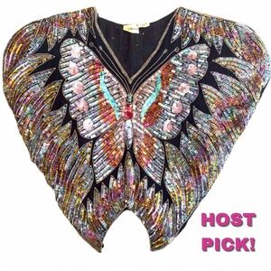 -- 80s Disco Butterfly Sequin Beaded Blouse