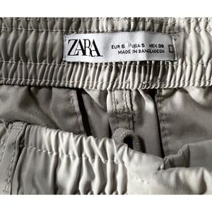 Zara Man Men's Cargo Pants, Off White, Size S, Polyester/Nylon/Cotton, Elastic Waist, Drawstring, Side Cargo Pockets