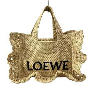 Auth LOEWE Loewe Font Tote Small ALF1B59X25 Natural Raffia - Tote Bag