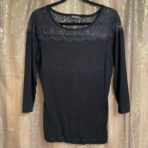 Express Black Lace Yoke Shoulder 3/4 Sleeve Sweater, Large