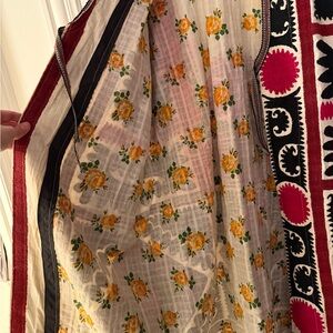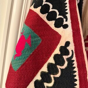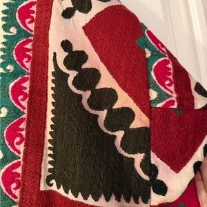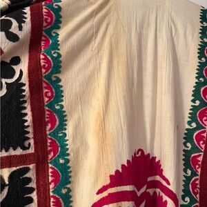 Vintage style robe from Uzbekistan— Rob has beautiful hand embroidered detailing throughout. This is a lovely statement piece or perfect decor/a wall hanging. This is a old piece and the colors have bled (see photos)
