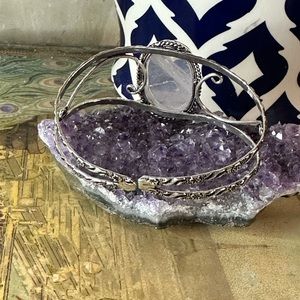 Elegant handcrafted bracelet with intricate silver detailing. Features a stunning purple gemstone centerpiece.