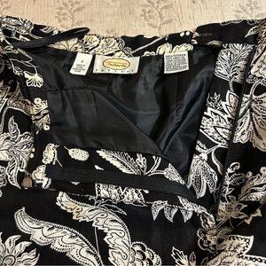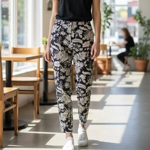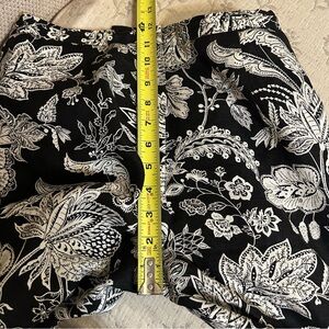 Talbots Pants 100% Linen Black White Floral Lined Tapered Art to Wear Boho Sz 6