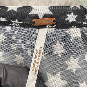 Free People Black White Star Print Marni Sheer Shirt Womens Long Sleeve Size Medium