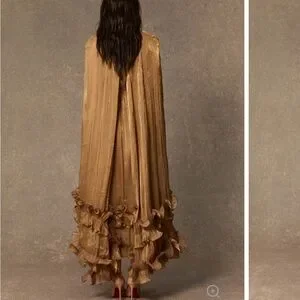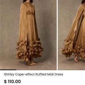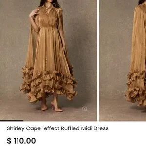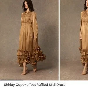 Make a statement with the Shirley gold ruffled midi dress. Its elegant cape-effect design is perfect for any special occasion.