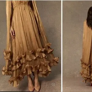 Sunfere Shirley Gold Ruffled Midi Dress