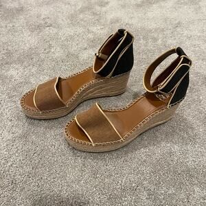 NWT Franco Sarto Women's Strappy Wedge Heel Black and Brown Size 8.5M