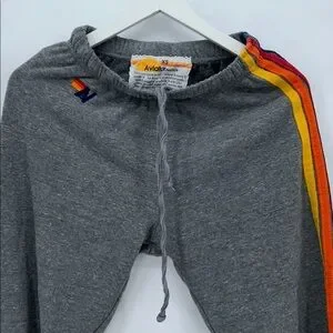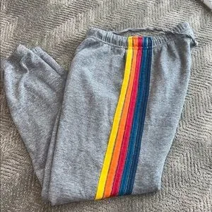 Aviator Nation Gray Joggers with Rainbow Side Stripe 5 SWEATPANTS - Size XSmall
