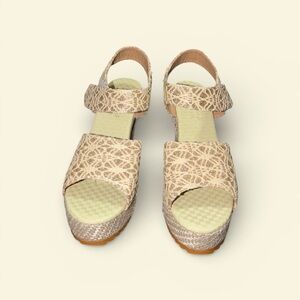 Step up your style with these elegant beige lace wedge sandals. Perfect for any occasion, these wedges add a sophisticated touch to your ensemble.