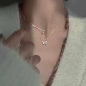 Stainless Steel Silver Double Layered Butterfly Necklace