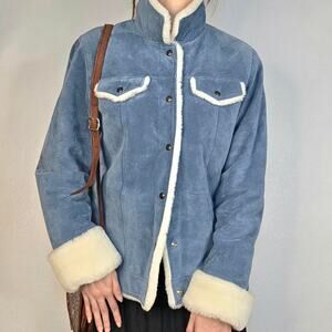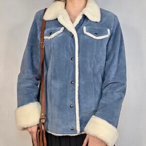 Vintage Blue Suede Penny Lane Jacket Faux Shearling Size Small 90s