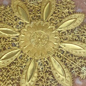 Vintage Atomic MCM Lucite Pink Gold Clear Medallion Trivet Coaster