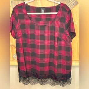 B005. Womenās Torrid CROSS BACK DRAPE LACE TOP black lace bottom 1