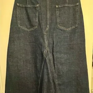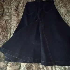 Cool dark blue denim skirt with a sleek design. Ideal for versatile styling.