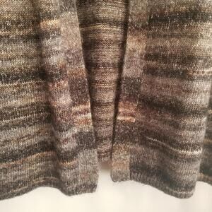 Natural Reflections Long Line Wool Blend Cardigan Sweater Large Gray Tan Multi