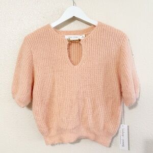 NWT Bishop + Young Ana Cut Out Horsebit Eyelash Peach Sweater in Spritz Tweed