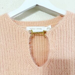 NWT Bishop + Young Ana Cut Out Horsebit Eyelash Peach Sweater in Spritz Tweed M