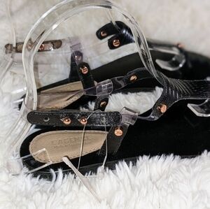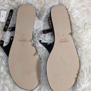L'Agence Flat T-Strap Black Slingback Black Alligator Sandals