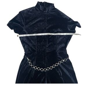 Stunning Jaclyn Smith jumpsuit in luxurious black velvet. This elegant one-piece features a sophisticated mock neck, short cap sleeves, and a flattering wide-leg silhouette. The rich velvet fabric has a beautiful drape and subtle sheen that catches the light beautifully.