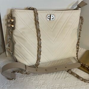 This elegant cream quilted shoulder bag is perfect for any occasion. Its stylish design and versatile color make it a must-have accessory.