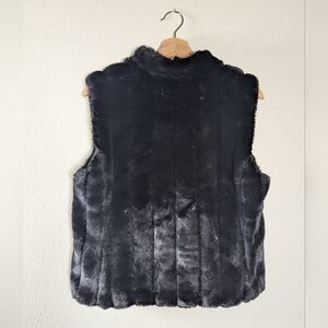 Elegant black faux fur vest with sleek zipper. Ideal for stylish layering.