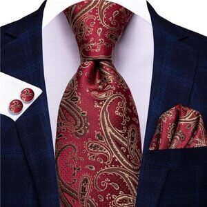 Silk Paisley Ties for Men Necktie Pocket Square Cufflinks Set Foral Tie Sets