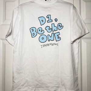 Line Friends x ZEROBASEONE Zeroni Woognini Short Sleeve T-shirt - like new, only worn once. Cotton, size M unisex (oversized fit for women). Features a Woongnini character drawn by Jiwoong on the front and ZB1 slogan on the back! Offers welcome, currently retails for $42.95 on Line Friends USA's website. Photocard not included