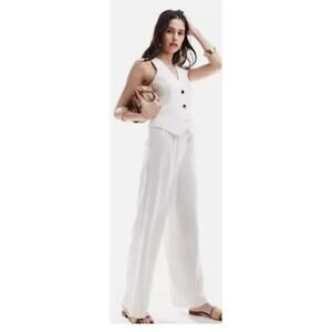 Revolve House of Harlow Floral Embroidered Flowy Wide Leg Pants Sz XS - White