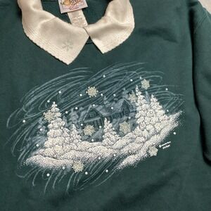 Vintage Morning Sun Sweater Womens Winter 1xl Embroidered Collar 90s Christmas