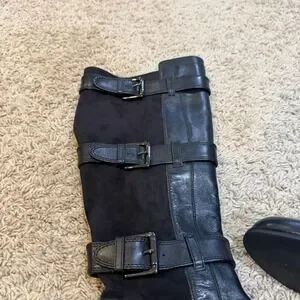 Cole Haan Black Suede Riding Boots Womens Size 7 Tall Buckle Strap Knee High