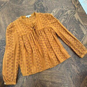 Madewell Mustard Yellow Eyelet Double-Tie Peasant Top Size S