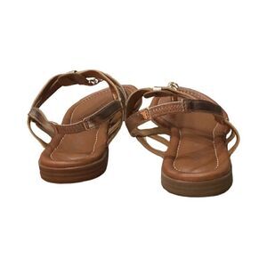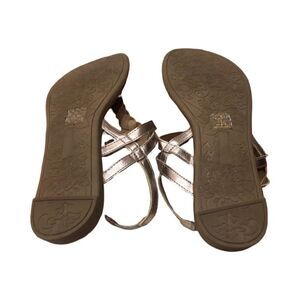 Cute slip on sandal, with braided thong design. Elastic back. Sandals are in excellent used condition, worn only a couple of times. No scuff marks or evidence of wear other than the bottom of the soles. Color: rose gold. Size: 7
