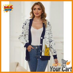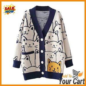 Brand new and in flawless condition — this adorable oversized knit cardigan features a cute kawaii cartoon cat print, perfect for cozy layering in spring and fall. The soft, comfortable fabric and relaxed fit make it a versatile piece for casual wear or gifting.