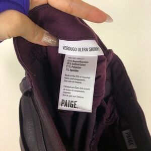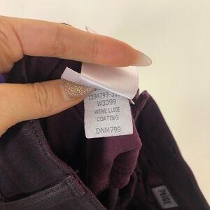 Paige Verdugo Ultra Skinny Wine Luxe Coating. OMFG these are so sexy IRL!! Very low rise and very on trend! Has stretch and has very emo/badass/villain era vibes!