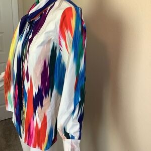 Elevate your wardrobe with this vibrant multicolor blouse. Featuring a stylish bow tie, this top is perfect for any occasion. Add a splash of color to your outfit with this eye-catching design.