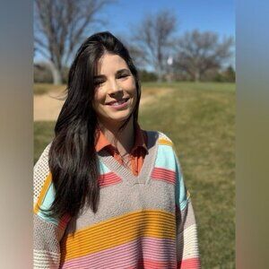 The Beach Daze Sweater by Daily Practice: an effortlessly relaxed staple with an oversized fit, breezy open-knit details, a flattering v-neckline, and subtly voluminous sleeves.