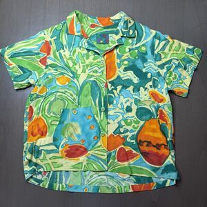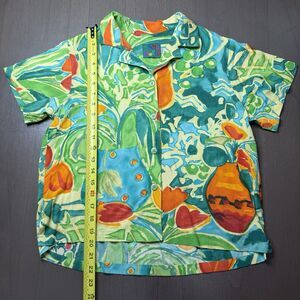 VINTAGE Jams World Hawaiian Floral Blouse Women’s XS Lily Vase Aloha Button Top